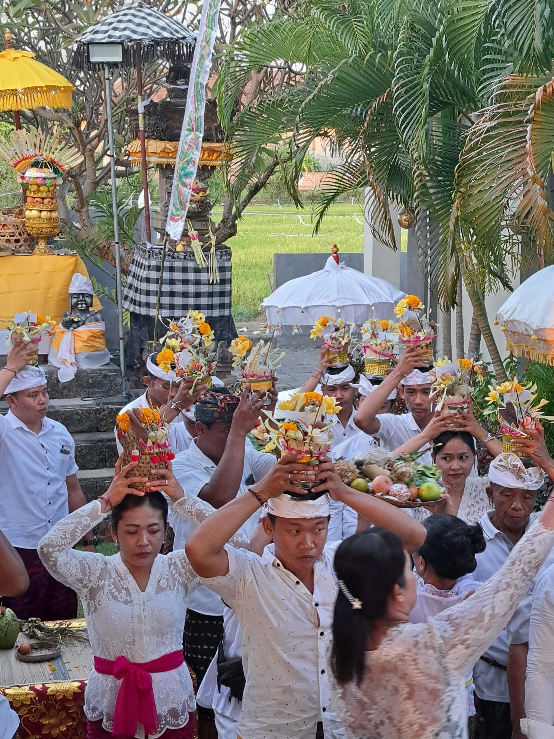 Vandaag viert ons hotel in Lovina zijn vijfjarig jubileum, en ter gelegenheid daarvan vindt er een speciale ceremonie plaats. Deze ceremonie is diep geworteld in de Balinese cultuur en spiritualiteit, waar het offeren centraal staat. Op Bali, waar het Hindoeïsme de dominante religie is, spelen rituelen en ceremonies een cruciale rol in het dagelijks leven.
