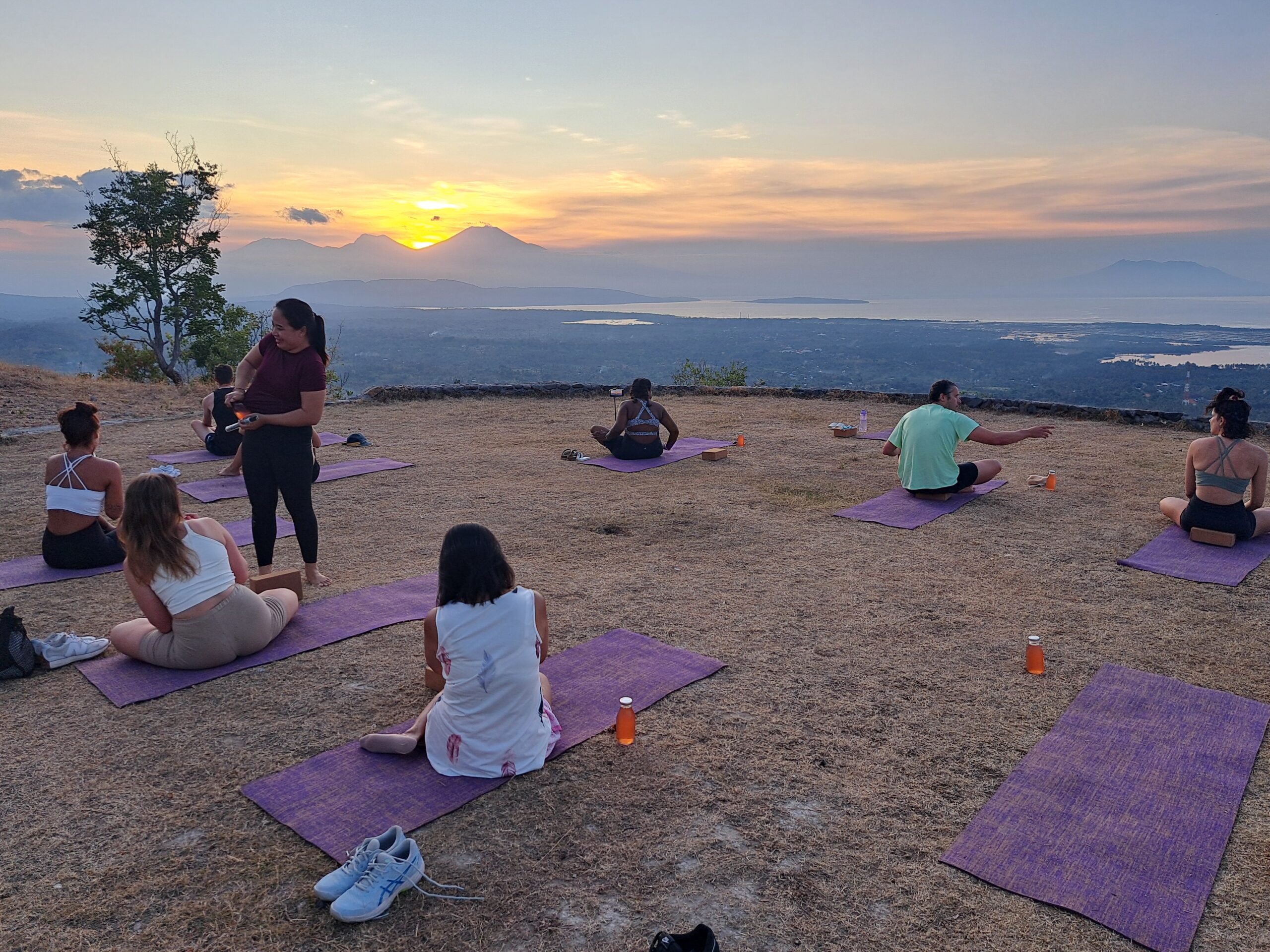 Vanavond hebben Esther en ik een bijzondere ervaring gedeeld tijdens een yoga- en meditatieavond op Sumberkima Hill. We reden naar de top van de heuvel, waar ons een adembenemend uitzicht wachtte. De meditatie vond plaats in een open arena, met de zonsondergang als betoverende achtergrond. Het was een moment van rust en reflectie, een welkome pauze zo vlak voor het einde van onze vakantie.